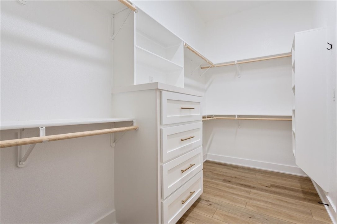 Nestled on a desirable corner lot in Callan Village, 2208 Cushman is a stunning Russ Davis home that leaves nothing to be desired. Designed with luxury and functionality in mind, this recently built five-bedroom and four-bathroom property boasts soaring ceilings, luxury vinyl plank floors, and an open, airy layout. The isolated primary suite provides a private retreat, featuring a spa-like bathroom complete with an oversized tiled walk-in shower, a garden tub, his-and-hers sinks, and an expansive walk-in closet. The gourmet kitchen, perfect for entertaining, offers a large center island with bar seating, abundant storage, a 5-burner gas stove, double ovens, a robust pantry, and an adjacent breakfast area. Adding to the home's thoughtful design is a mudroom with built-in storage, a spacious utility room with cabinetry and a folding station, and a private office with French doors located off the entryway. The downstairs also includes a fully isolated guest bedroom with its own bathroom.